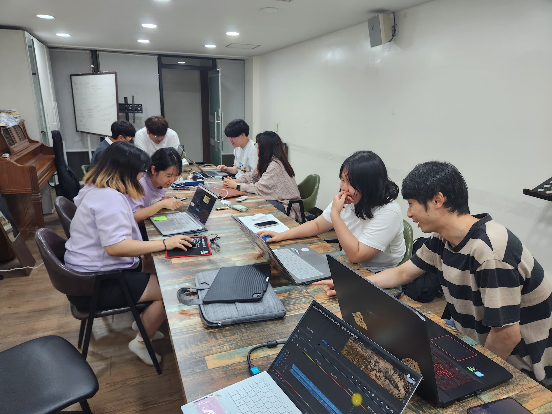 정기모임 시간을 수요일에서 금요일로 옮기고 나니 금요일마다 전체 사역 일정이 있는 주가 많아서 모이지 못하는 일이 자주 생기네요. 4월에는 파워포인트 사용법과 디스커버리 예배 때 방송실에서 PPT 운영하는 방법에 대한 교육을 진행했고, 5월부터는 영상 편집 강의를 시작했습니다. 학생들은 많고 수급할 수 있는 편집 프로그램 계정은 적어서 좀 어려운 면이 있지만 하나씩 배워 나갈 예정입니다. 그리고 6월말에 있을 DFC 여름수련회를 위한 홍보 영상을 만드는 일도 시작했습니다.