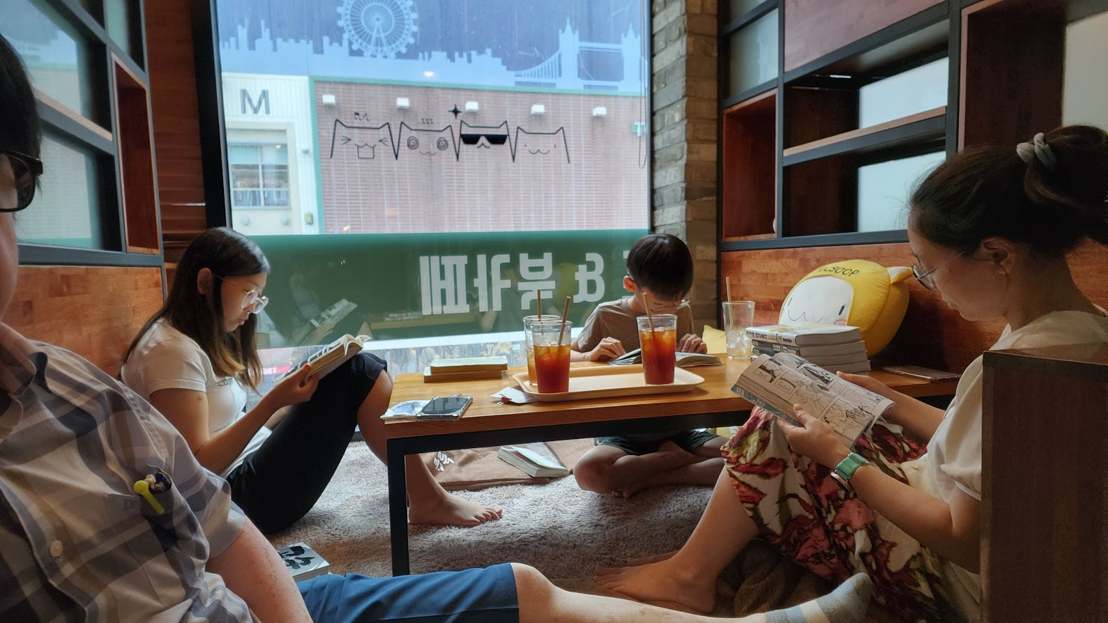 예원이는 학교 공사 관계로 여름방학이 2주밖에 되지 않았습니다. 그래서 그 짧은 기간에 맞춰 8월 첫주에 휴가기간을 가졌습니다. 멀리 가기보단 집에서 뒹굴 뒹굴거리며 쉬었네요. 휴가기간에 유일하게 한 특별한 일이 만화카페에 가서 하루 종일 각자 보고 싶은 만화를 본 것입니다. 시원한 곳에서 여유를 부려보니 좋더라구요.(왼쪽 사진)