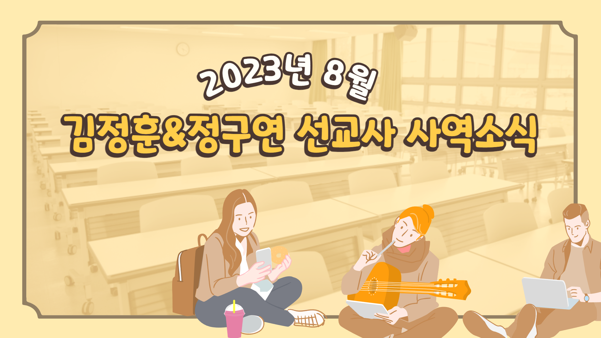 길것만 같던 방학이 스르륵 사라져 버린 것처럼 끝나고 캠퍼스는 개강을 맞이했습니다. 빠른 학교는 8월 마지막 주부터, 나머지 대부분의 학교는 9월 1일부터 2학기 일정을 시작했네요. 저희의 8월은 개강 준비로 학교마다 저마다의 일정을 소화하느라 바쁘게 지냈습니다. 저(김정훈)도 선교단체 대표 리트릿, 미디어팀 나들이 등 외부 일정도 많았네요. 태풍과 무더위도 지나가고 쌀쌀해지기 시작하는 9월입니다. 전해드리는 사역소식 잘 읽어주시고 응원해 주세요. 늘 감사합니다. 정말이에요^^